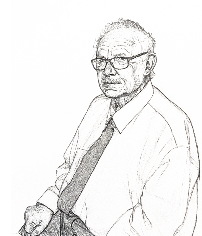 Pencil sketch of BAAP founding member Guy Anderson wearing a tie