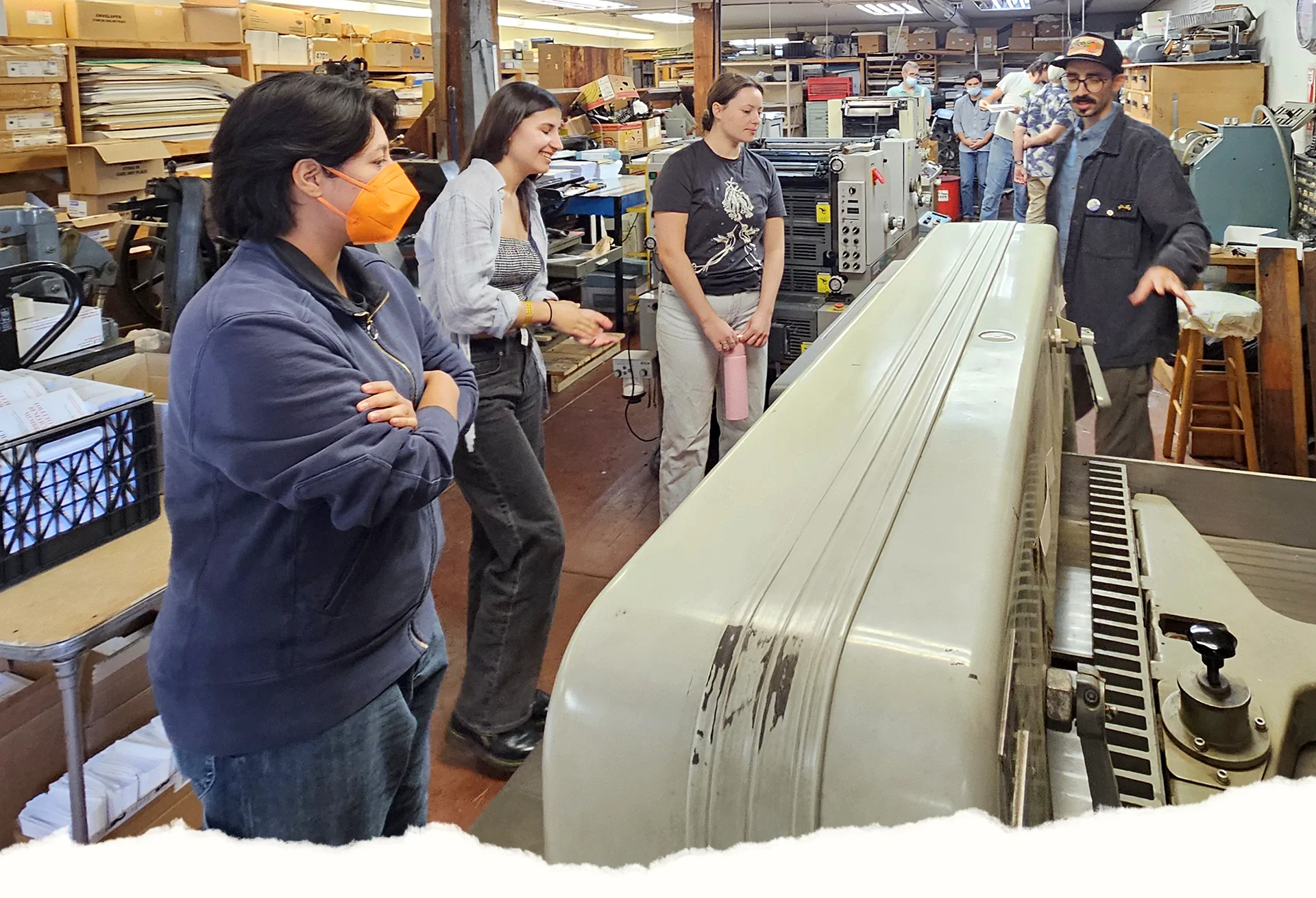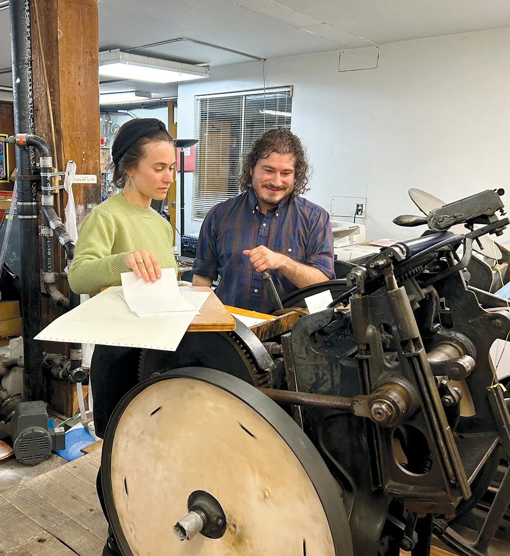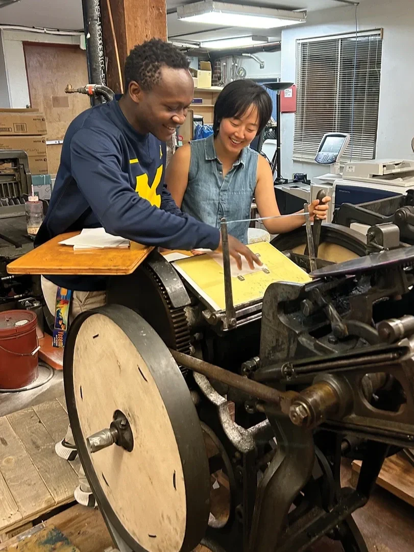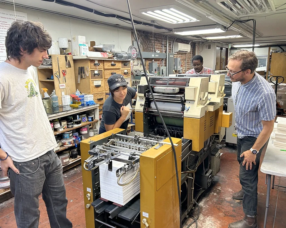 Volunteers learn to operate an 1891 Chandler and Price letterpress during BAAP’s Saturday print sessions. Volunteers work with members and learn the skills of traditional printing.